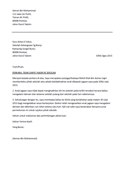 - Surat Kiriman Rasmi Sebab Tidak Hadir Sekolah