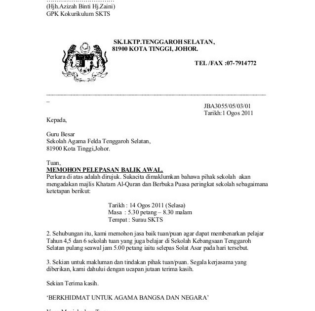 - Contoh Surat Tidak Rasmi Berhenti Sekolah